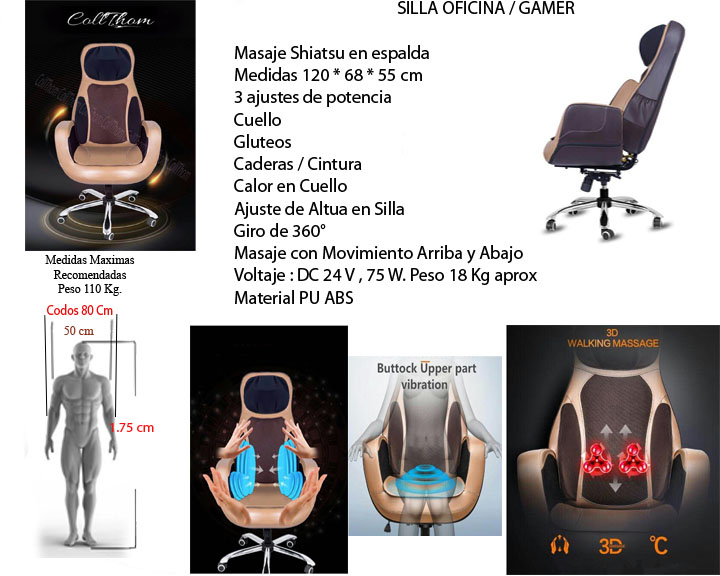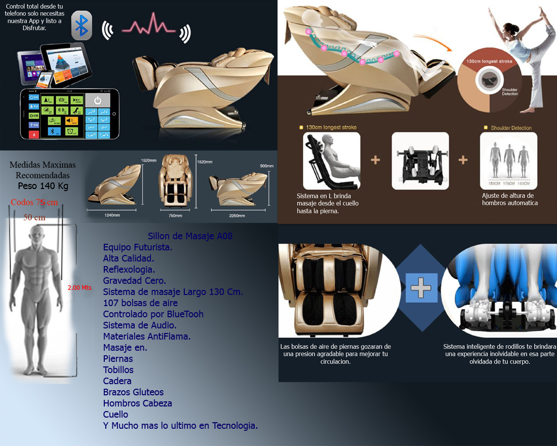 Lo mejor en su clase, con sistema de audio bluetooh, control por APP, sistema de masaje en L extendido hasta los muslo. y mucho mas. De click Para Detalles